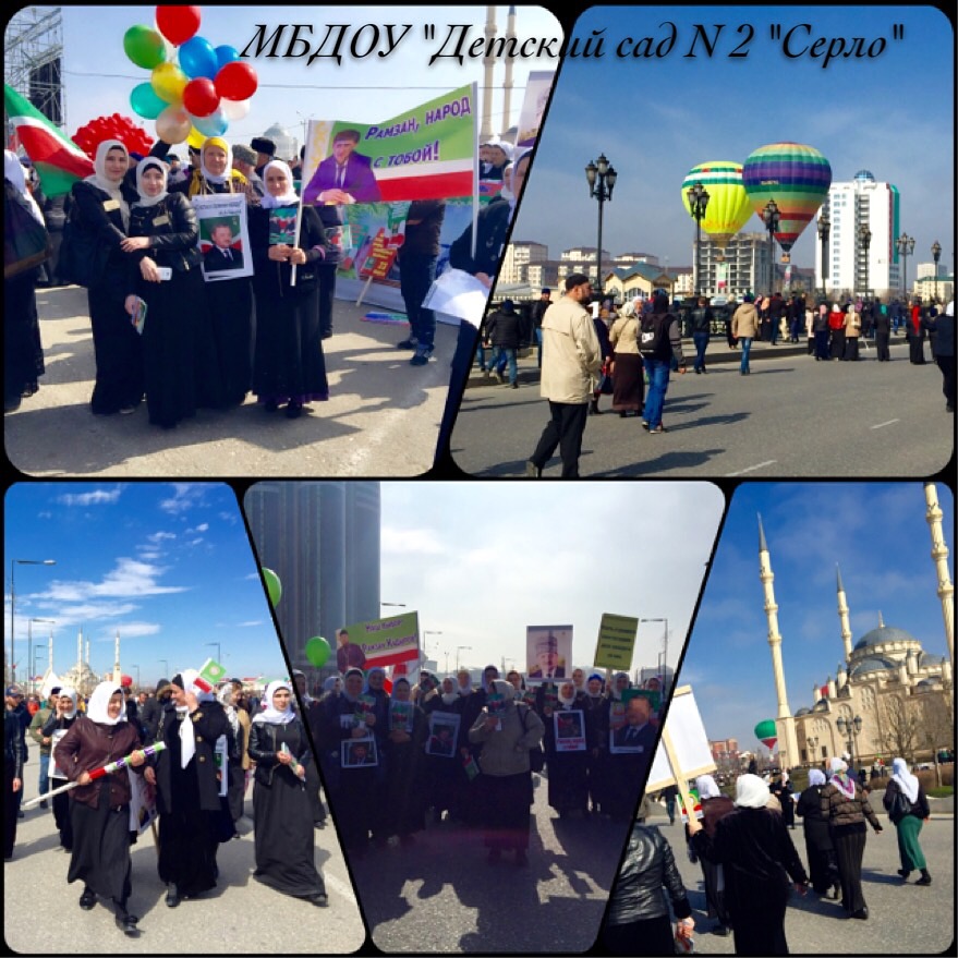23.03.2016Коллектив МБДОУ «Детский сад № 2 «Серло» принял участие в масштабном митинге, посвященном Дню Конституции Чеченской Республики.